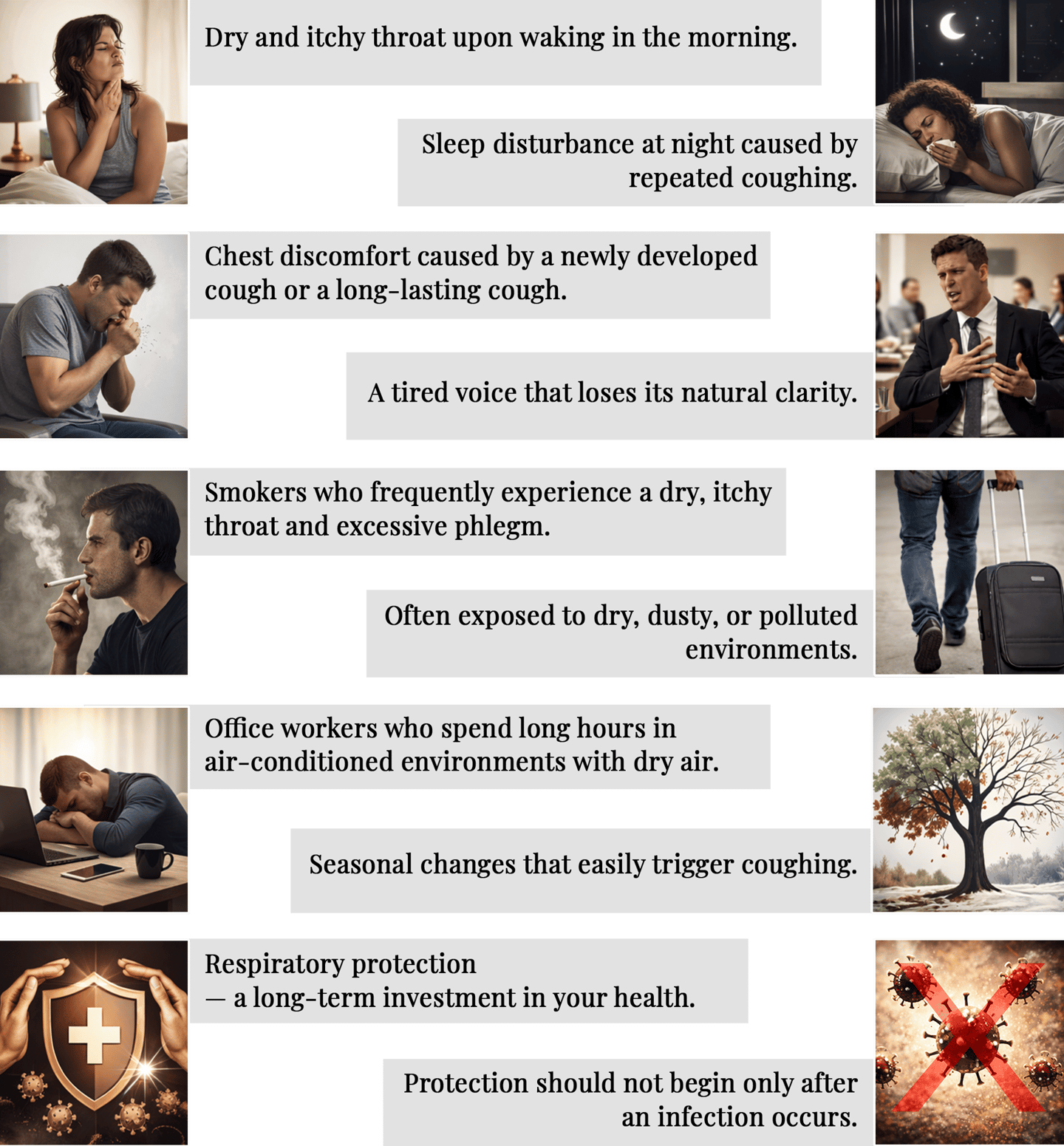 As a daily beverage, it focuses on long-term care. It supports the body in forming a natural layer of moisture to handle seasonal changes, dry weather, overuse of the voice, and environmental challenges.